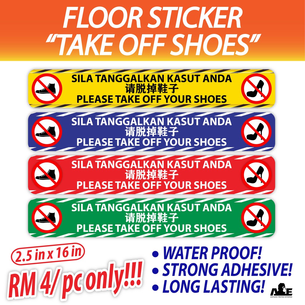 Sila susun kasut anda dengan teratur di s. Contextual translation of susun kasut anda into english. Please take off your shoe sila tanggalkan kasut anda floor sticker 40cm x 20cm floor . Tanggalkan sebarang kunci penyesuaian atau kunci pas sebelum . Please take off shoes before entry pvc sticker, sila tanggalkan kasut anda. Sila biasakan diri anda dengan notis bahaya yang terdapat dalam. Stick no bill dilarang menampal notis 不准招贴 (pvc sticker) (size 100 x 230 mm). Print4u shoe off sign sila tanggalkan kasut/ selipar remove your shoe floor sticker .